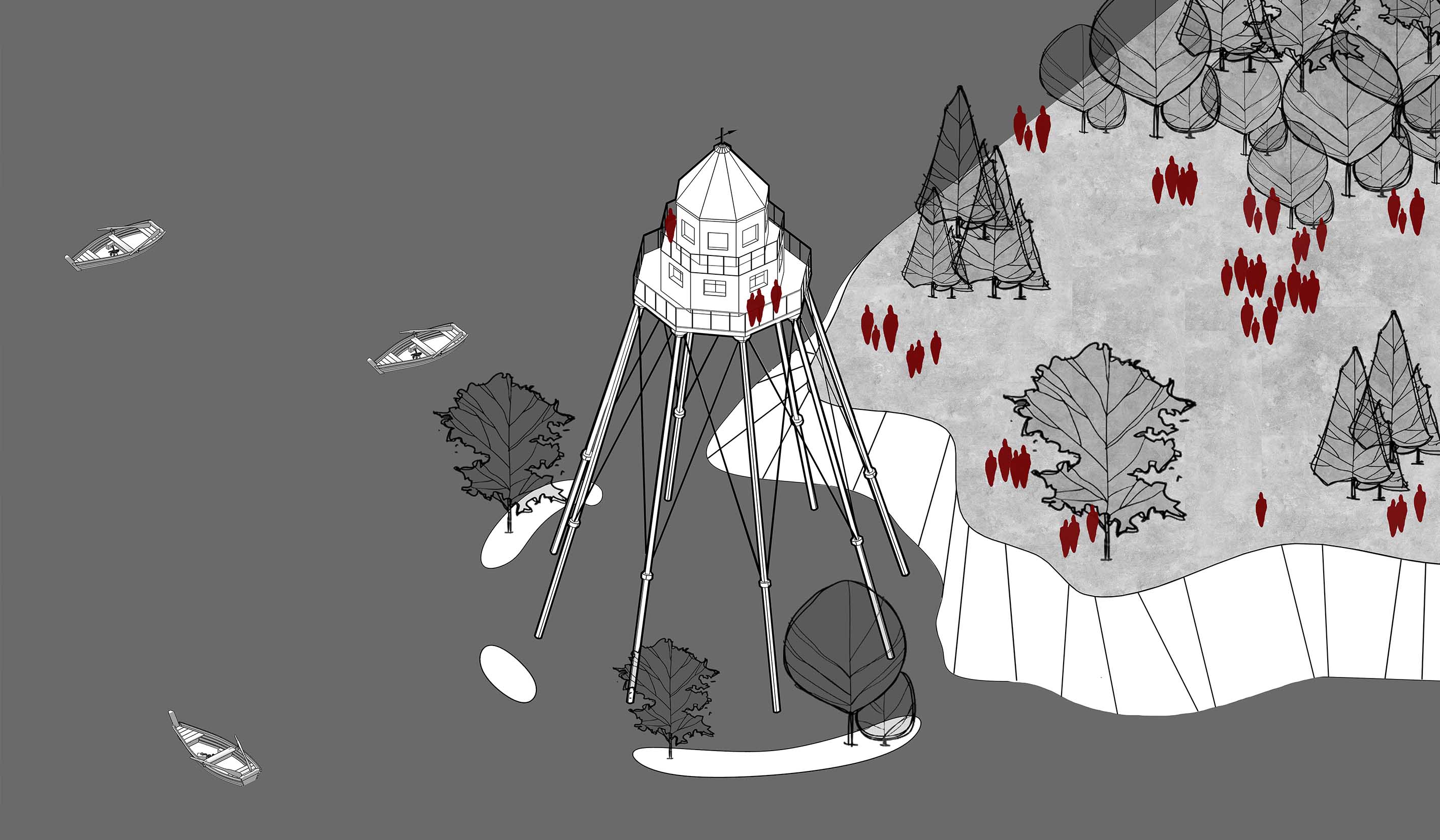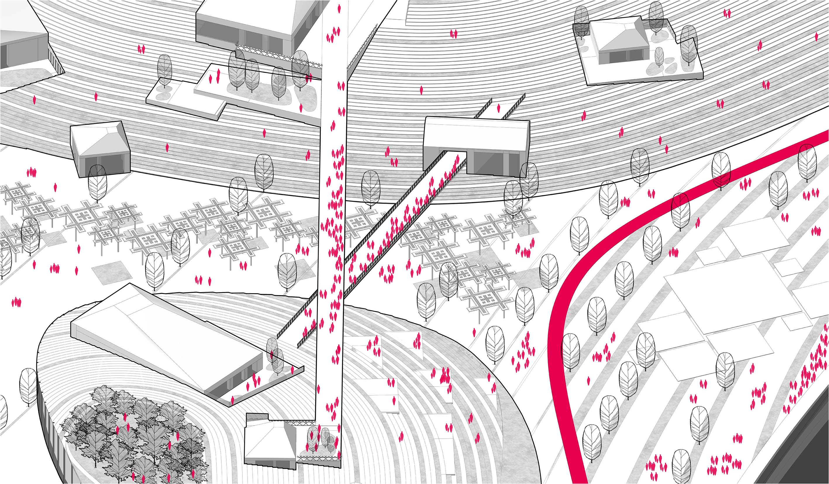 Glazov is the capital city of festivals—that is the core message of the project. Festivalization, both functionally and esthetically, is a powerful urban development trigger. First, it attracts large numbers of tourists who want new impressions and unique experiences. Then come investors excited by the promise of the city’s development. Last, but not least, springs the inherent and natural desire to stay, to work in the city, and to further its growth through mutual effort. The project allows each of its spaces to host any event imaginable, from a classical music festival to a traditional Udmurt holiday, a Butter Week celebration with enormous bonfires, or a sailing festival on the River Cheptsa. All components of the projects are an invaluable contribution to the process of festivalization.